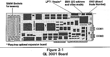 This chapter explains how to configure and install a QL 3001 board. Unless otherwise specified, "QL 3001" refers to both the standard QL 3001 and the QL 3001CX. The "QL 3000 Series" includes the QL 3001 and the QL 3002 products.