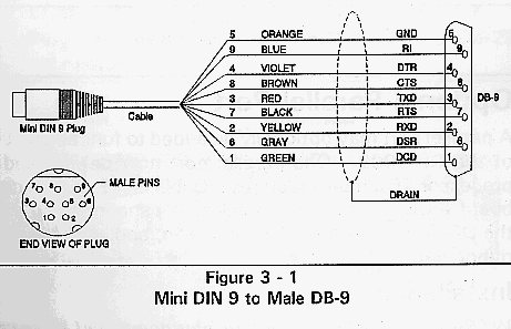 Figure 3-1, Mini DIN 9 to Male DB-9.