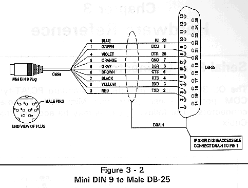 Figure 3-2, Mini DIN 9 to Male DB-25