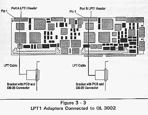 Figure 3-3, LPT1 Adapters Connected to QL 3002