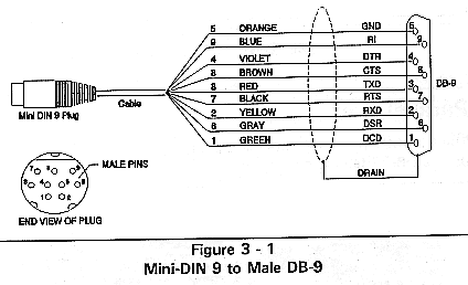 Figure 3-1, Mini-DIN 9 to Male DB-9.
