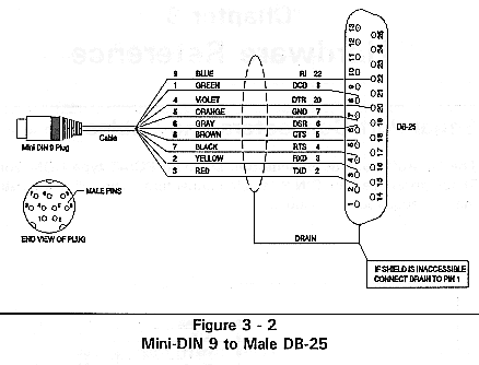 Figure 3-2, Mini-DIN 9 to Male DB-25