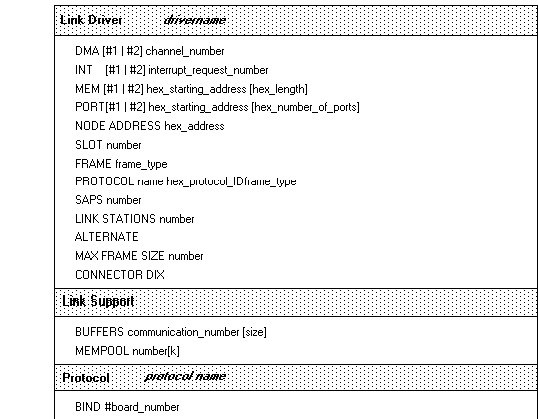 DMA (3,5,6,7) INT (3,4,5,9) PORT (300H,320H,340H,360H) NODE ADDRESS FRAME PROTOCOL (IPX)
