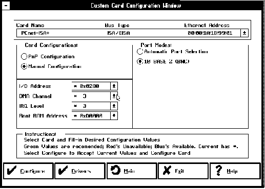To custom configure the PCnet -ISA adapter card, select "Custom"