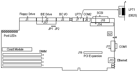 An optional parallel port may be added to function as LPT1 on the BC. This requires a Cubix LPT1 printed circuit board adapter and bracket which provide an interface between the BC header (J7) and the DB-25 connector. The optional connector may be installed in an empty slot (where the end bracket of a board would normally be), or in the additional connector space of an auxiliary junction panel.