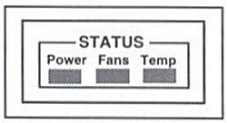 located on each power supply. Fans - Green indicates that the system fans (in the front, below the disk drives) are operating correctly. Red indicates a system fan failure. Temperature - Green indicates system temperature is within acceptable operating parameters. Red indicates system temperature has exceeded acceptable operating parameters. |