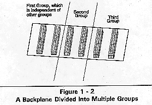 All slots in a passive backplane are interconnected with traces, creating a bus. If these traces are broken between slots, the backplane can be separated into smaller independent backplanes or groups. Refer to Figure 1-2