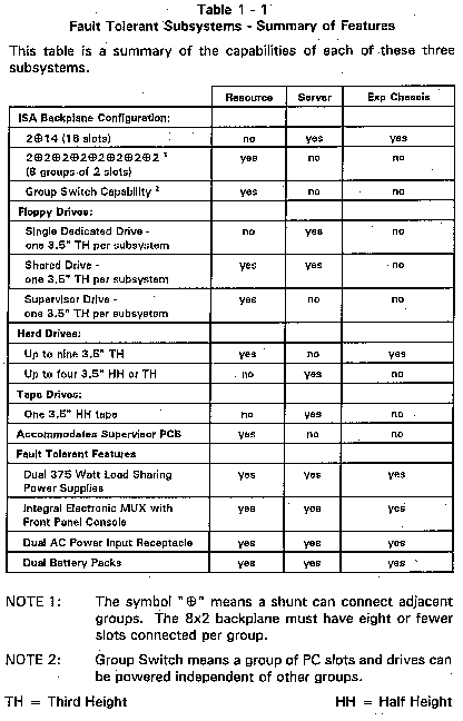 Refer to Table 1-1 for a summary of the features of the FT ISA Resource, Server and Expansion Subsystems.