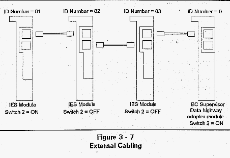 1. Configure the data highway ID number and termination switch on the IES as explained in Chapter 2 - Configuration.