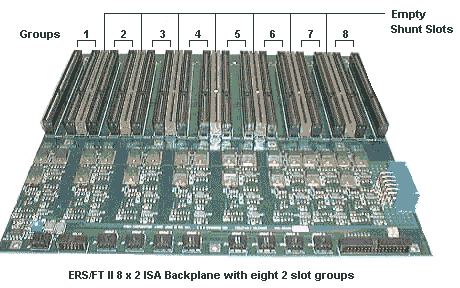 The above photo shows a "8 x 2 ISA " backplane. The 8 signifies the number of groups, the 2 signifies the number of slots per group, and ISA specifies the Bus type.
