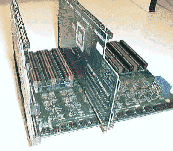 Fourth, look at the BC Series plug-in motherboards. They are usually installed in the left slot of the group, and have ribbon cables on the top of the boards, connected to the system multiplexor.