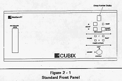 Figure 2-1 and Figure 2-2 illustrate the front panel options of the MultiServ/FT Subsystem.