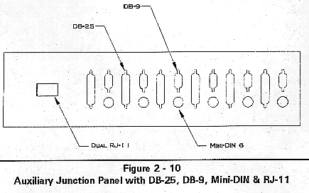 The panel illustrated in Figure 2-10 provides space to install up to six DB-25, six DB-9, and six Mini-DIN connectors, and two RJ-11 modular phone plug connectors. This panel is similar to Figure 2-91 except that the RJ-11 I/O is supported. The BC Supervisor, which is an integral part of the Cubix Supervisory System, requires these RJ-11 connectors as they provide access to the Cubix Data Highway.