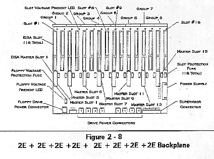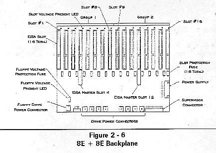 Figure 2-6 shows the MultiServ/FT EISA backplane with two groups of 8 EISA slots each (8E + 8E).