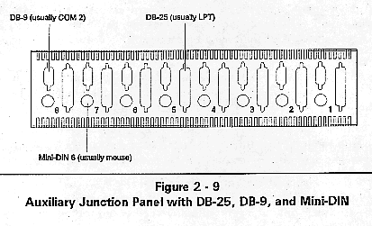 Three panels are offered on MultiServ/FT Subsystems. The panel, illustrated in Figure 2-9, provides space to install up to eight DB-25, eight DB-9, and eight Mini-DIN connectors. Typically this panel is used to provide parallel printer, COM2, and mouse support.
