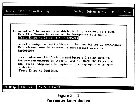 Both installation scenarios require running the Cubix installation utility, INSTALL.EXE, on the QL Series Installation Diskette. This utility prompts the user for the installation parameters and informs the user as the software installation progresses. For advanced users, the installation utility can be invoked with command line parameters that override the user interface. Refer to the Advanced Installation Features section at the end of this chapter for command line options.