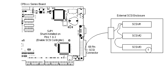 SCSI termination enabled on the CP8xxx board, and termination of