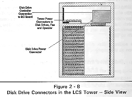 Disk Drive Connectors in the LCS Tower -- Side View