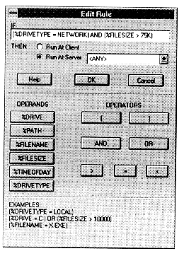 Values may be entered as required for each keyword. The rule evaluation portion of the server program interprets the rules. Rules are written in the form "If <expression> then <result>," where the "result" is a directive to execute the application via remote node or remote control. If no rule is satisfied, Applink uses a default, which the administrator can set.