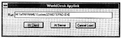 With Applink, it is possible to have a functional icon that resolves to a program on a remote computer that was not actually installed by the client. For example, an application may be installed in a common program group on a WinFrame server. Any user that logs on to that server directly can run the application. Since an Applink remote control session emulates a user session on the WinFrame server, an icon on the client that resolves to the server side application will also work correctly under remote control.