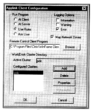 When the Citrix® WinFrame software is installed prior to installing Applink, the Applink installation program automatically configures Applink to work correctly with WinFrame. If Applink is installed first, the full path to the WinFrame client program must be set from within the Applink client configuration program.